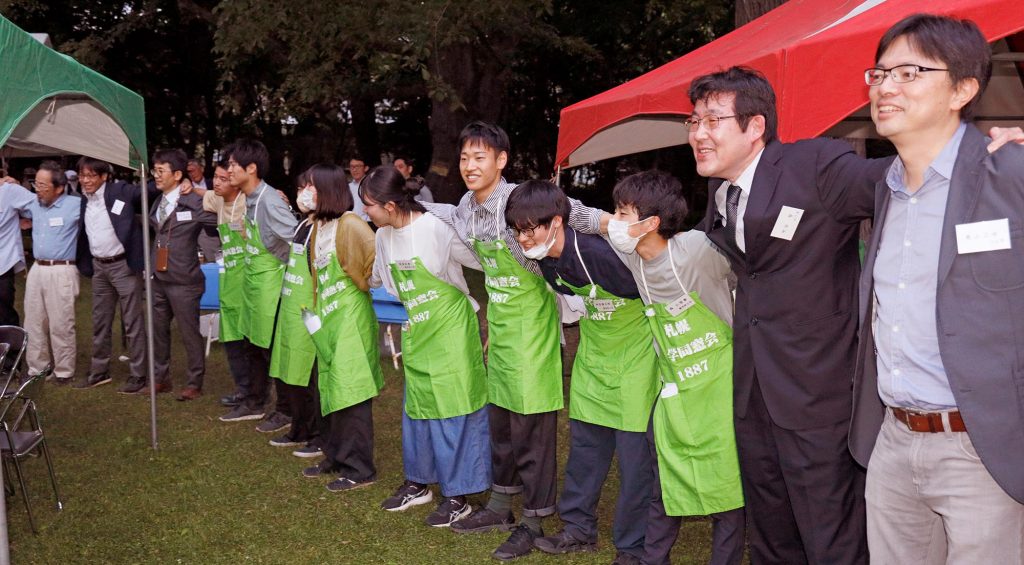 札幌本部 2023.06.24 園遊会4年ぶり開催 200人が語らい楽しむ 当会主催の第30回ガーデンパーティー(親睦園遊会)が23日(金)夕、北大植物園で開催されました。新型コロナウイルスの影響で3回中止されていたため、開催は2019年以来4年ぶりです。 この日、当初心配された降雨は避けられ、曇天の下、道内外から会員と家族、来賓ら計201名が集い、新緑美しいロケーションの中、ビールや料理、音楽、そして旧友らとの語らいを楽しみました。 【幅広い年齢層の同窓生たちが集い、ゆっくりと語り合うことができた園遊会】(小野芳樹「さっぽろ農学校」リポーター撮影) これまでの参加者は札幌を中心に道内会員が多かったのですが、今回は同日午後に同窓会役員・代議員集会を開催したこともあり、道外会員も多くなりました。また、学内の教職員が約30人、学生が約30人と学内勢もかつてなく多くなりました。未確定ですが参加者総数は過去最多級とみられます。 今回は宝金清博北大総長が歴代総長として初めて来賓参加、横田篤、山口淳二両理事・副学長、交友会エルムの杉江和男会長も参加しました。 今回の料理は、石狩管内の農家のお母さんたちでつくるグループ「ケータリング美利香(ぴりか)」が初めて担当。千歳、恵庭、北広島、江別、札幌、石狩市で穫れたばかりの野菜と魚類を食材にした、メンバーによる手作り料理が、テーブルに所狭しと並べられました。火器も使って温かい焼きそばやピザ、味噌汁なども振舞われ、参加者には多くの料理の美しさや美味しさが大好評でした。 また、北海道農民管弦楽団(農民オケ)の主宰者である同窓生の牧野時夫さんが率いる「トリオマモーレ」の演奏が行われ、ヴァイオリン、フルート、ピアノによるクラシック音楽やアレンジされた「都ぞ弥生」など親しみのある曲が、園内の空気を和やかにまた華やかにしました。園遊会での音楽演奏は今回が初めてです。 前回まで、同窓会員が製造に携わったワイン二種(ふらのワインと登醸造の「セツナウタ」)が試飲提供されましたが、今回はこれに北大ワインが加わり、さらにいずれも同窓会員が手掛けた厚岸のウイスキー「小満」、積丹のジン「KIBOU」、余市の有機ブドウジュース、東京のクラフトコーラ「伊良(いよし)コーラ」も試飲提供されました。 開会と同時に、松井博和理事長が挨拶、宝金総長が北大創基150年記念事業などについてミニスピーチを行い、4月に農学研究院長に就任した野口伸教授が乾杯の音頭を取り、開宴しました。 また、新任教授が参加者の前に出て、一人ずつ紹介されました。コロナ禍で園遊会が中止された3年間の新任も含めて計16人でした。 また、同窓会が「さっぽろ農学校サポーター」とともに編集し、発行したクラークブックスの「エルムブックレット」第一弾、横田篤顧問(北大理事・副学長)著『北海道大学発展の歴史とSDGs』がこの日、東京の印刷所から到着し、お披露目されました。横田顧問と出版を担当した寿郎社の土肥寿郎社長が挨拶しました。 参加者全員分のクラフトコーラを差し入れた伊良(いよし)コーラ=東京=の小林隆英代表、ケータリング美利香事務局の中村由美子さんもマイクを取り、会員たちにメッセージを送りました。 「都ぞ弥生」の合唱は、松浦英幸会員の口上に続いて行われました。参加者全員が肩を組み、芝生広場いっぱいの一つの円となってつながり、歌声は樹々に沁み入っていきました。 【肩を組み『都ぞ弥生』を歌う参加者たち】(小野芳樹「さっぽろ農学校」リポーター撮影) 参加者からは口々に「料理が美味しかった」「音楽が素敵でした」「スピーチがいずれも簡潔で流れが良かった」などの感想を聞きました。大阪から初めて参加した会員の一人は「素晴らしい園遊会に参加させていただきまして嬉しかったです。感動しました」と話していました。 【終宴後、参加者を見送る松井博和理事長】(小野芳樹「さっぽろ農学校」リポーター撮影) 事務局 (注なき写真は櫻井徳直「さっぽろ農学校」特別講師が撮影) ※ 参加者のみなさん。園遊会や遠友夏学校、役員代議員集会に関するご意見・ご感想を事務局にお寄せください。 info@alumni-sapporo.or,jp